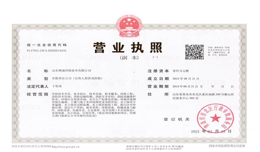 山東博通環(huán)保技術(shù)有限公司是一家專(zhuān)業(yè)從事環(huán)保、安全、消防的多元化技術(shù)服務(wù)公司,公司致力于打造專(zhuān)業(yè)的技術(shù)服務(wù)團(tuán)隊(duì),立足青島,輻射山東,服務(wù)范圍涵蓋:環(huán)保技術(shù)開(kāi)發(fā)、技術(shù)轉(zhuǎn)讓、技術(shù)咨詢(xún)、技術(shù)服務(wù);環(huán)保工程;消防技術(shù)咨詢(xún);消防設(shè)施檢測(cè);消防安全評(píng)估;消防設(shè)施維護(hù)保養(yǎng);環(huán)境應(yīng)急預(yù)案咨詢(xún);安全生產(chǎn)標(biāo)準(zhǔn)化咨詢(xún);場(chǎng)地環(huán)境調(diào)查報(bào)告編制,土壤與地下水環(huán)境調(diào)查及風(fēng)險(xiǎn)評(píng)估,水土保持方案編制,水土保持過(guò)程監(jiān)測(cè),水土保持驗(yàn)收工程,排污許可申報(bào)代理,清潔生產(chǎn)審核;批發(fā)零售:環(huán)保設(shè)備、機(jī)械設(shè)備與配件、消防設(shè)備、儀器儀表、五金建材、化學(xué)試劑(不含危險(xiǎn)品)。公司具有“建設(shè)手續(xù)一站式辦理,安環(huán)問(wèn)題一條龍解決”的獨(dú)特優(yōu)勢(shì),可為客戶提供高效、優(yōu)質(zhì)的安全、環(huán)保、消防管家技術(shù)服務(wù)。